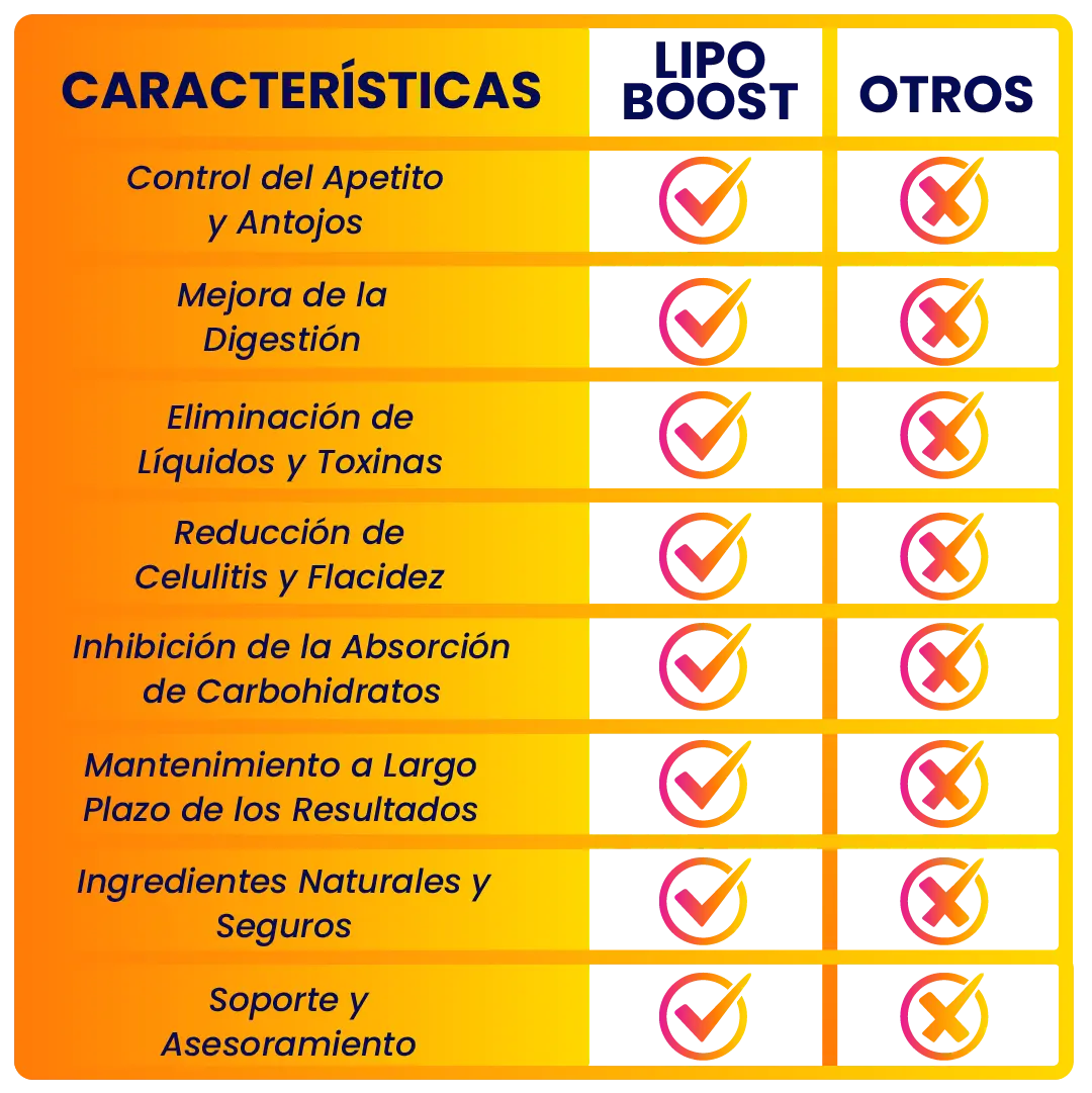 Lipoboost está aquí para cambiar eso. Este potente quemador de grasa está formulado para enfocarse en las áreas que más te preocupan, ayudando a derretir la grasa en esos lugares obstinados como el vientre, las caderas y los muslos.